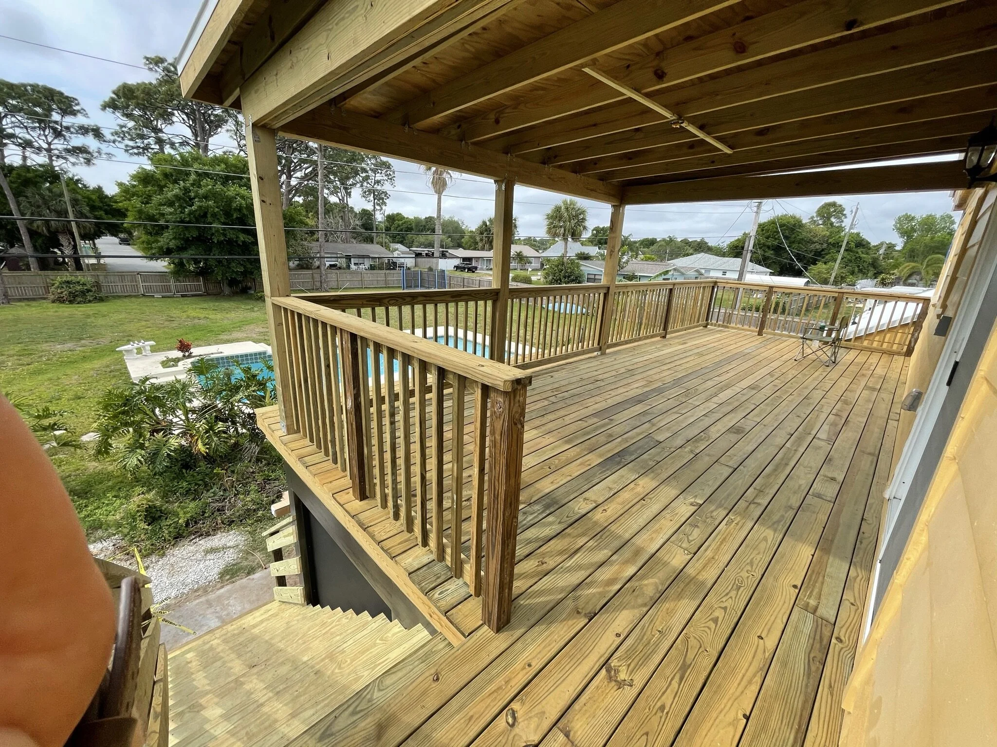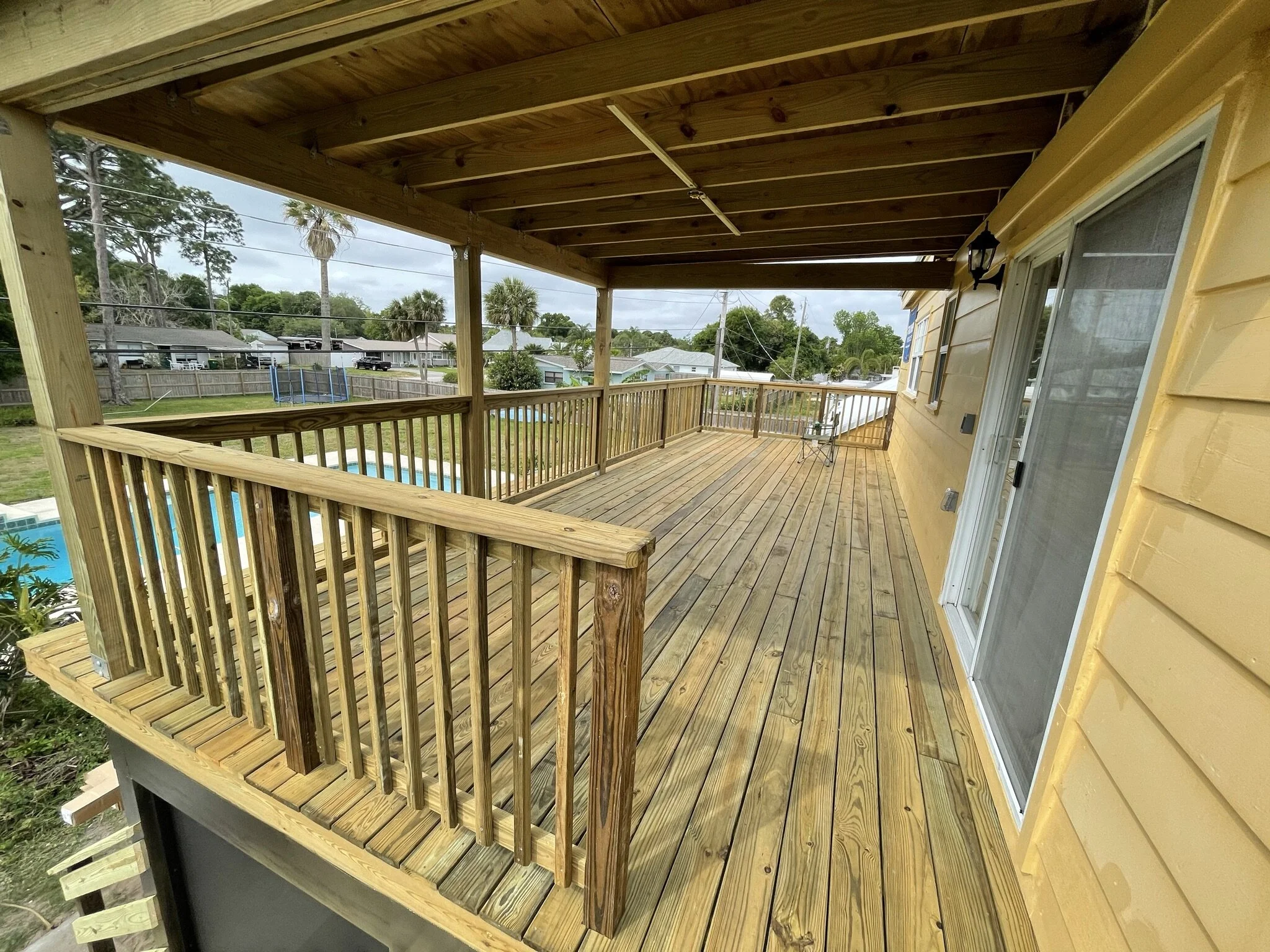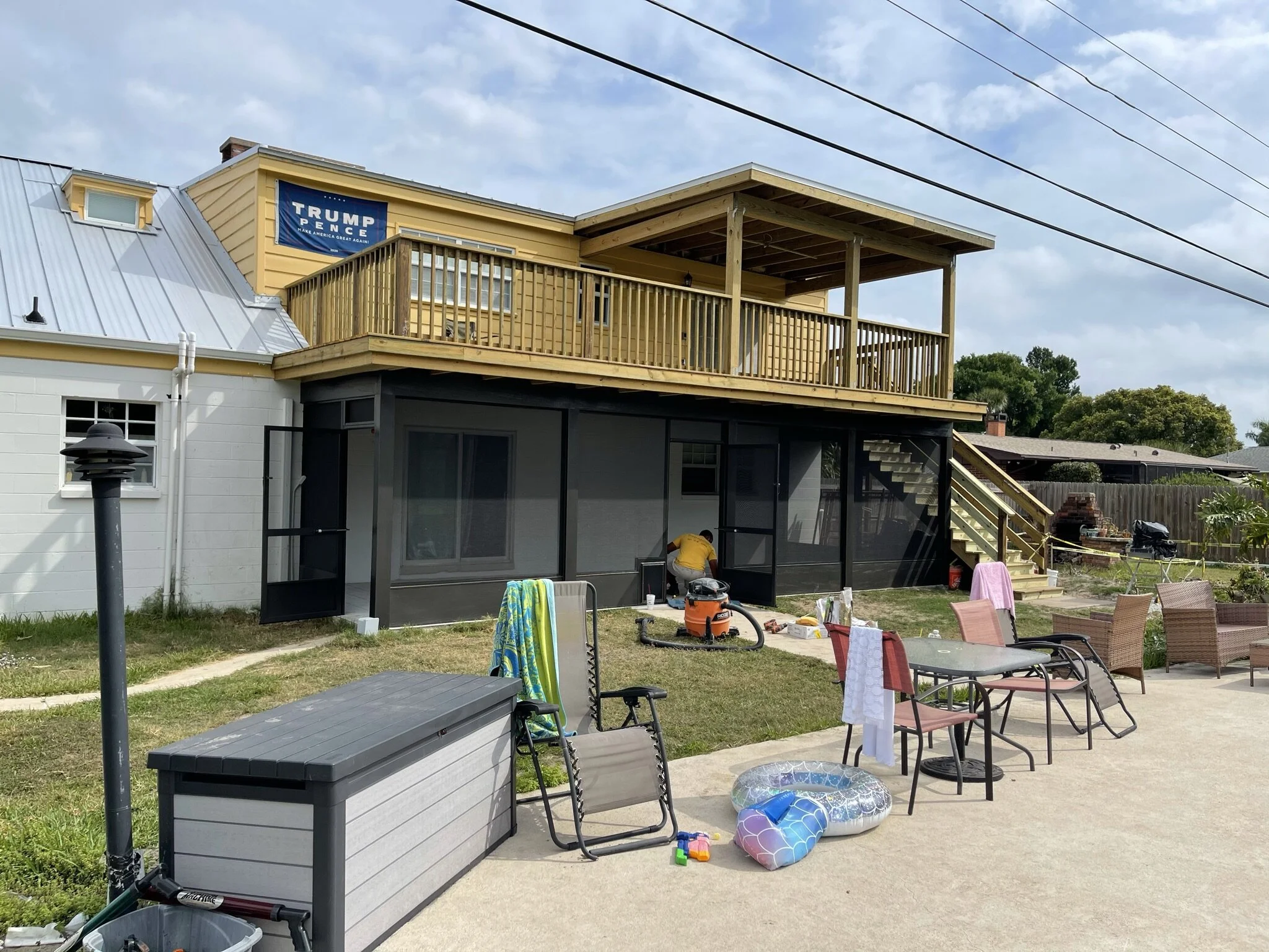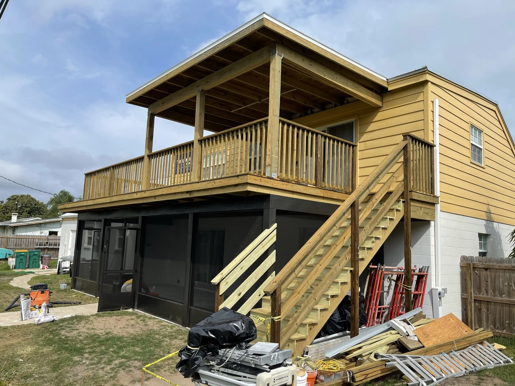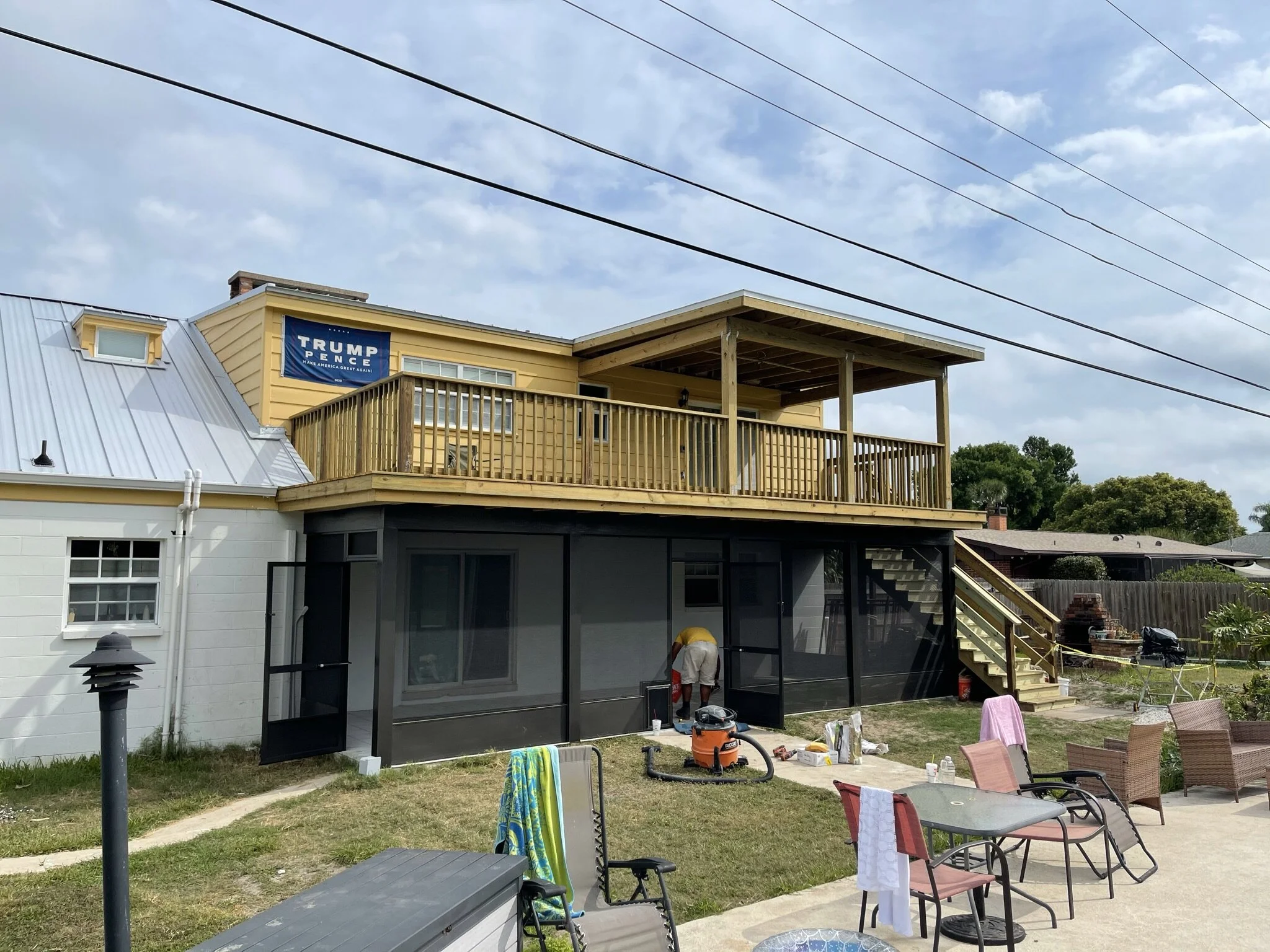 Second Story Back Porch Balcony Deck with Roof & Screened in Porch underneath for 1st floor Porch.